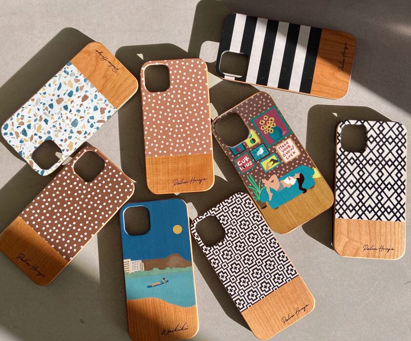 天然木をつかったオリジナルデザインのiPhoneケースです。ナチュラルな風合いとベージュやブラウンの温かみのあるドットが大人可愛いデザインです。