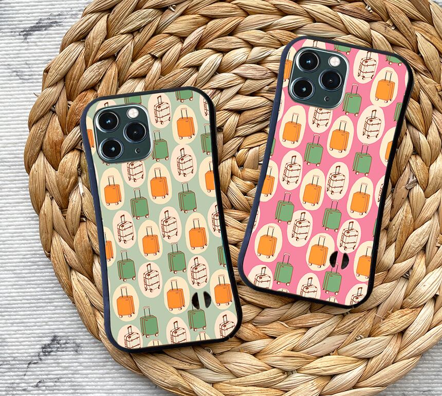 手書きで描きあげたオリジナルのスーツケースイラストのグリップケースです。
