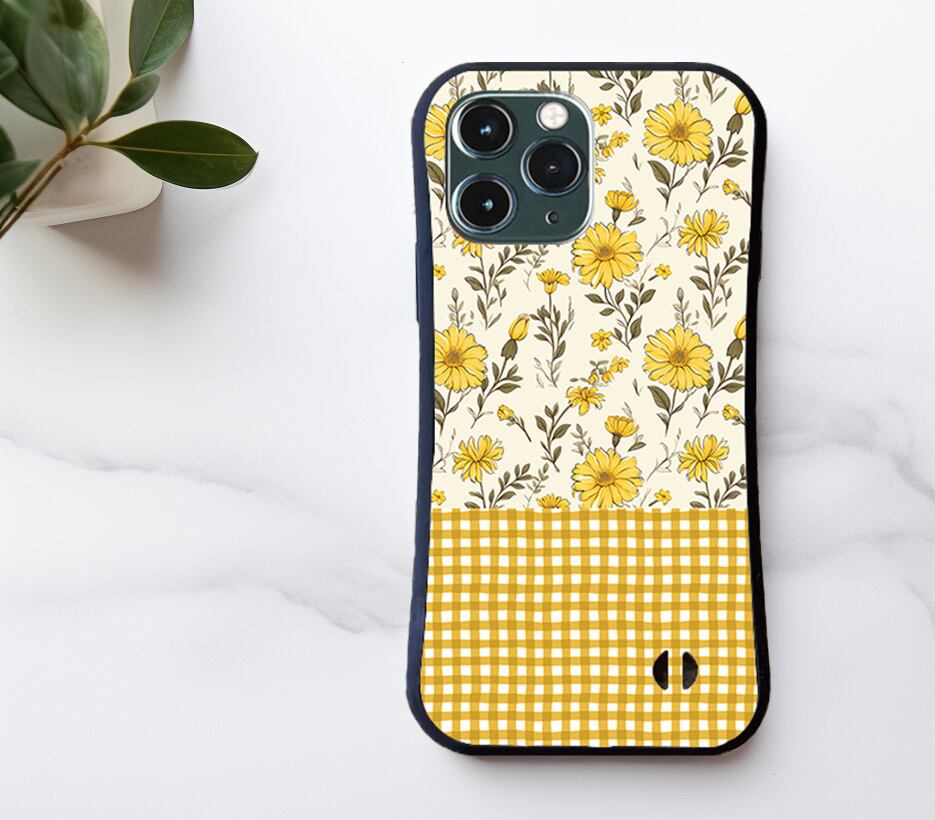 白を基調にくすみカラーで描かれたワイルドフラワーが、イエローのチェック柄のデザインと相まって上品で優しい雰囲気です。