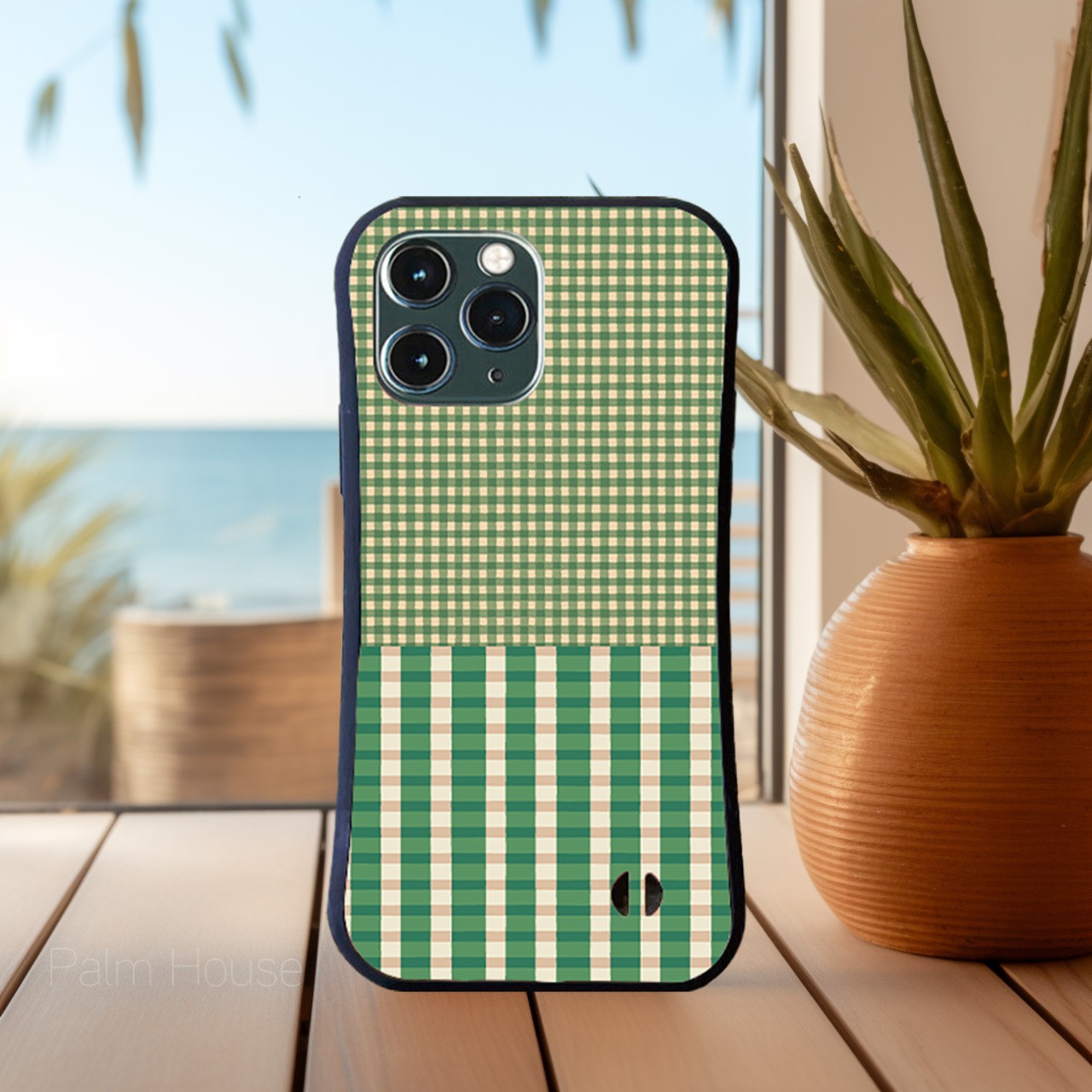 2種類のグリーンのギンガムチェック柄のデザインがシンプルの中にも可愛らしい雰囲気です。