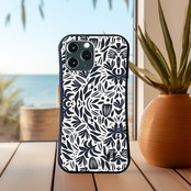 海やハワイが好きな方、白をベースに落ち着いた黒で散りばめられたハワイの草花が大人っぽく落ち着いたデザインになっています。