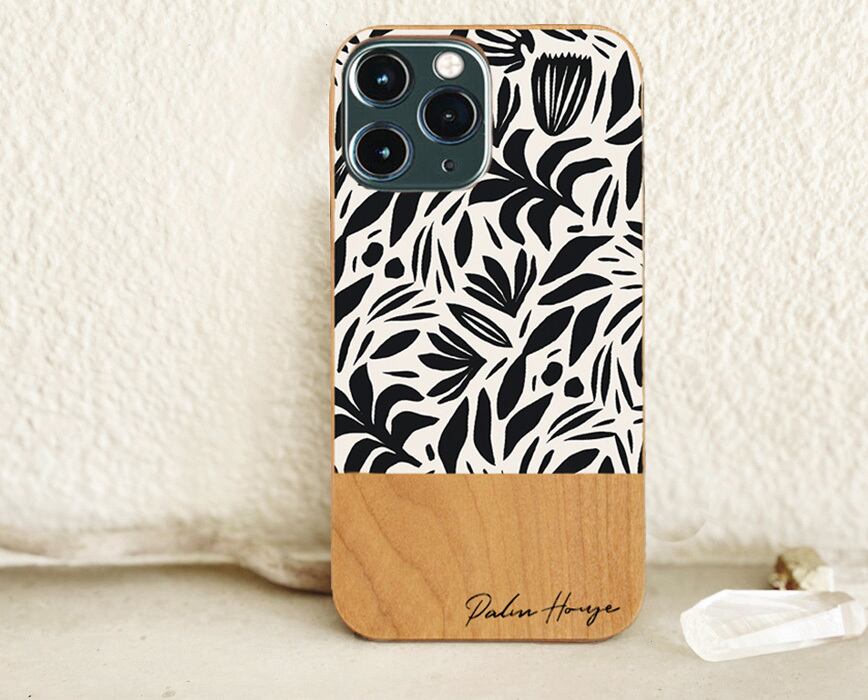 天然木♡名入れ♪ HAWAIIAN ORGANIC BLACK & WHITE iPhoneケース アート