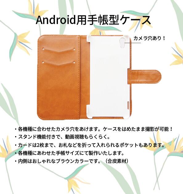 Android機種の方はベルト付きの手帳型ケースにて対応が可能となります。
